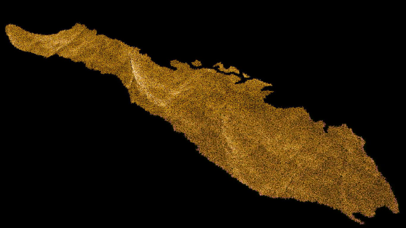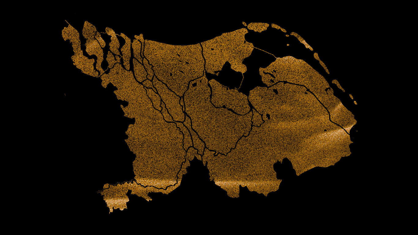 The images that accompany the many voices show computer-generated islands in which digital waves turn into digital grains of desert sand, presenting the viewer with a dystopian vision, in which an unfolding ecological catastrophe is implied. Images of industrial tools and corporate objects appear in distorted shapes, as silent echoes of a past, in which the course of history has not been reversed.
